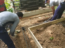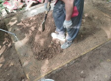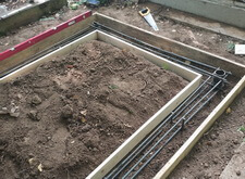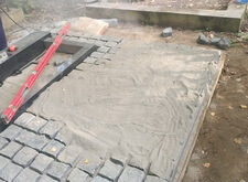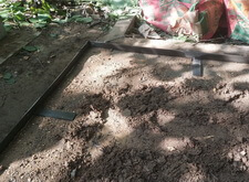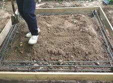 Далее устанавливаем опалубку, которую засыпаем сухой пескобетонной смесью.