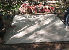 Приступаем к монтажу памятника. Привезли уже готовое надгробье, водрузили его на сделанное заранее основание, укрепили.