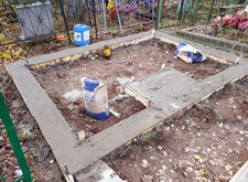 Периметр участка мы залили бетоном, предусмотрев специальный выступ. В дальнейшем он послужит основанием для надгробья.